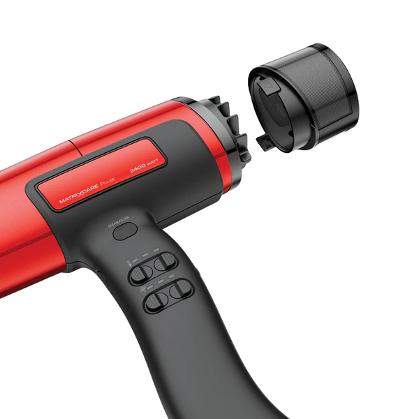 Suszarka Matrixcare AI Pulse to ultralekki, ergonomiczny model stworzony do pracy profesjonalnej. Wyposażona w cyfrowy silnik HI-PAX o mocy 2400 W i żywotności do 10 000 godzin, oferuje wysokie ciśnienie powietrza oraz przepływ 90 m³/h. Dzięki temu umożliwia szybkie suszenie nawet gęstych włosów, skracając czas stylizacji bez kompromisów w jakości.