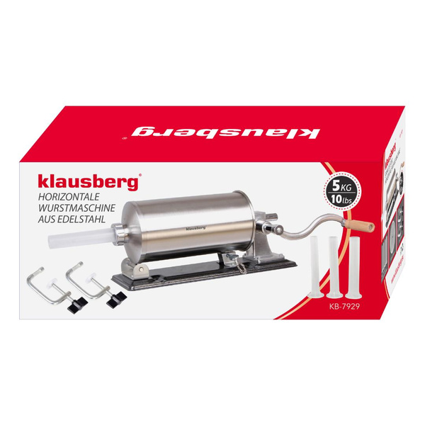 - Pozioma nadziewarka do kiełbas Klausberg KB-7929 to solidne i funkcjonalne urządzenie, które ułatwia przygotowanie domowych wyrobów mięsnych. Wykonana z wysokiej jakości stali nierdzewnej, gwarantuje trwałość, higienę oraz wygodę użytkowania. Dzięki dużej