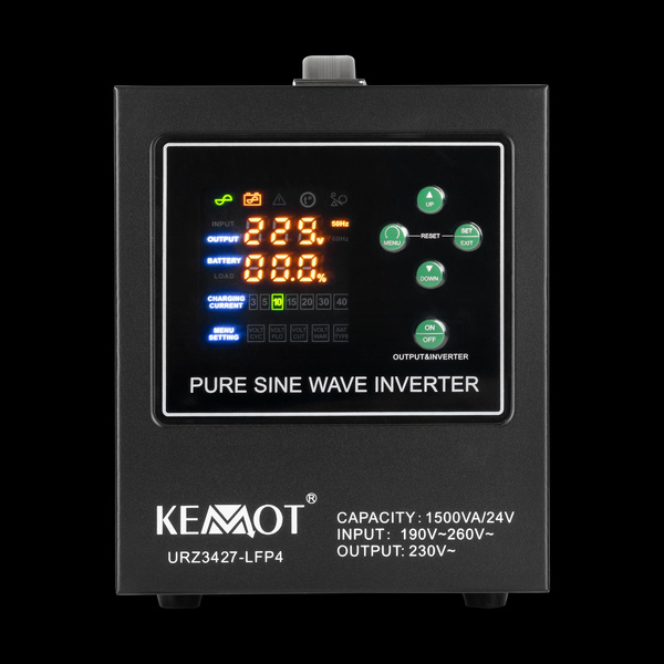 Zasilacz awaryjny KEMOT PROsinus-1500/24-LFP4 przetwornica z czystym przebiegiem sinusoidalnym i funkcją ładowania 24V 230V 1500VA/1050W