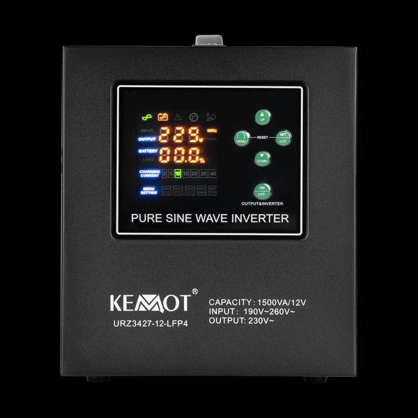 Zasilacz awaryjny KEMOT PROsinus-1500-LFP4 przetwornica z czystym przebiegiem sinusoidalnym i funkcją ładowania 12V 230V 1500VA/1050W