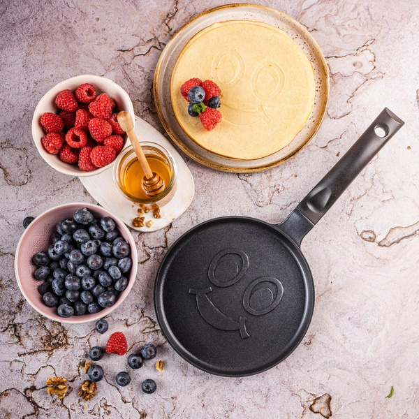 Patelnia do naleśników, wzór uśmiechnięta buźka, aluminiowa, nieprzywierająca powłoka, czarna, Ø18 cm, Klausberg, KB-7971 KB-7971