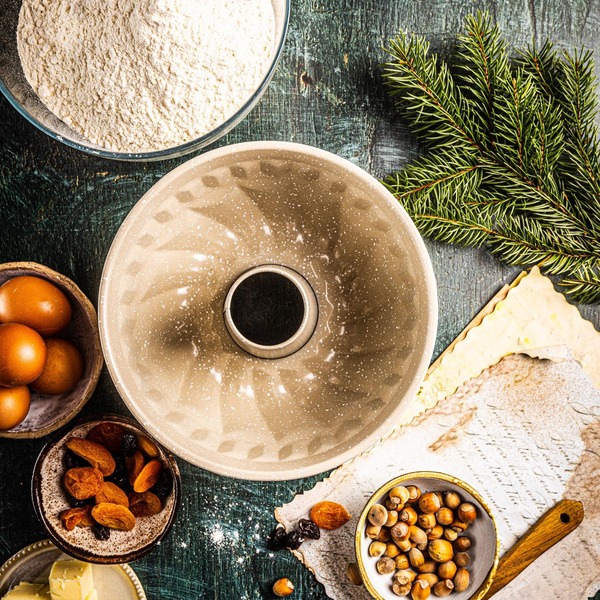 Forma, metalowa, okrągła z dziurką, z powłoką nieprzywieralną, czarna, średnica 22 cm, KH-1993