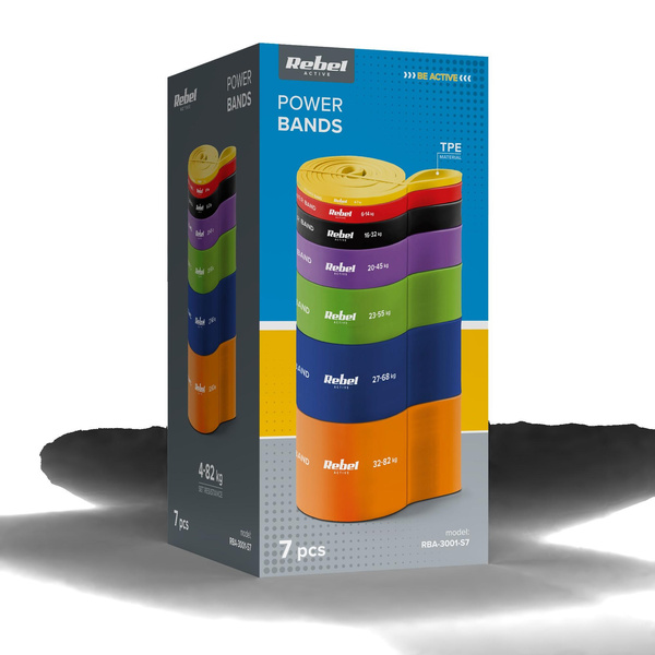 Zestaw gum do ćwiczeń TPE - Power Band PT-S7, 4-82 kg, 7 gum TPE, REBEL ACTIVE