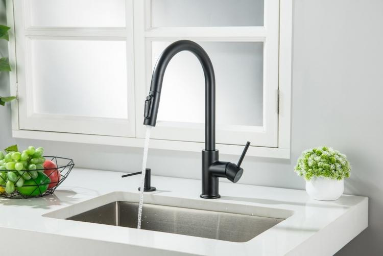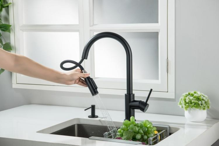 - bateria z wyciąganą wylewką z przełącznikiem strumienia wody