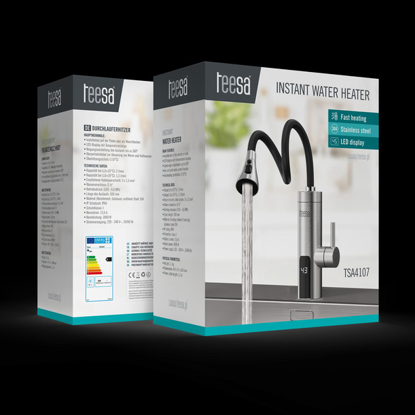 Przepływowy podgrzewacz wody - bateria metalowa kuchenna z elastyczną wylewką