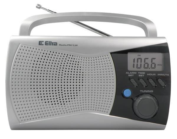 - LW/FM, mono, sieciowe/bateryjne, wyświetlacz, analogowe, 5W, srebrny