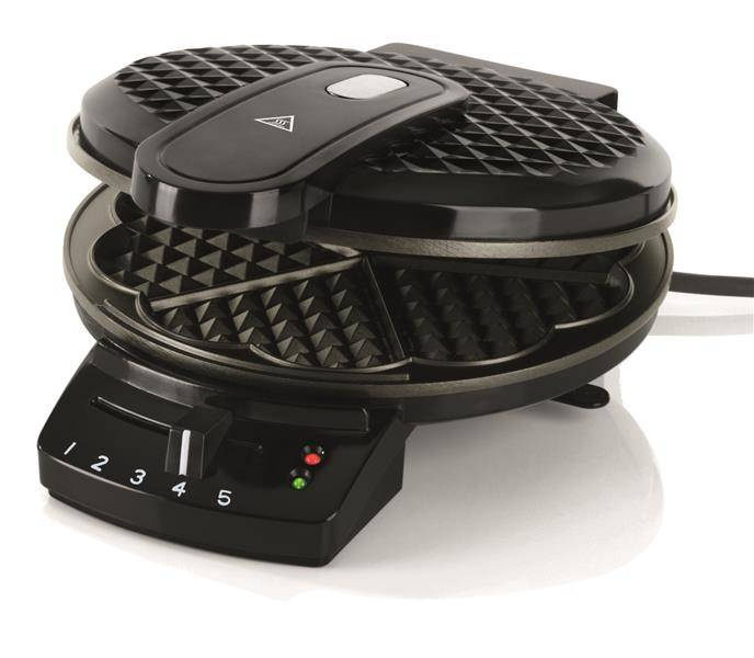 • 1200W, 5 gofrów (serca), suwak temperatury