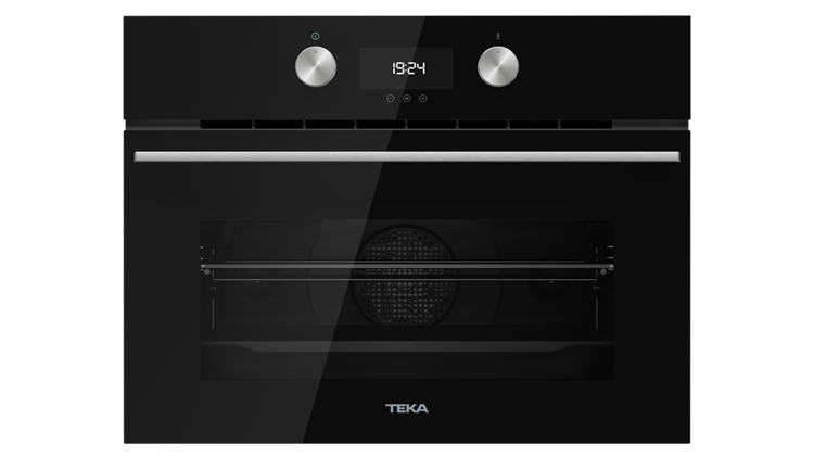 - 44L, A+, sterowanie sensorowe, piekarnik kompatkowy 45 cm, wyświetlacz LED, 9 funkcji grzania, prowadnice teleskopowe (1 poziom), opuszczana grzała grilla, system czyszczenia HydroClean, INOX + czarne szkło