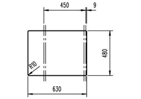 - Wycięcie w blacie: 630 x 480 mm, promień kąta 10 mm