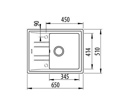 - tegranit: carbon, model odwracalny, wymiary zew 650x510mm, wielkość komory 345x414x200mm, kpl odpływowy za automatem zamykającym z zaworem 3 i 1/2" z przedłużką i syfonem, do szafek od 45cm
