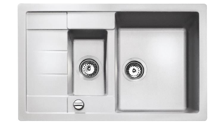 - tegranit: biały, model odwracalny, wymiary zew 780x500mm, wielkość komór 345x430x200mm i 166x285x145mm, kpl odpływowy z automatem zamykającym z zaworami 3 1/2" z przedłużką i syfonem, do szafek od 60cm
