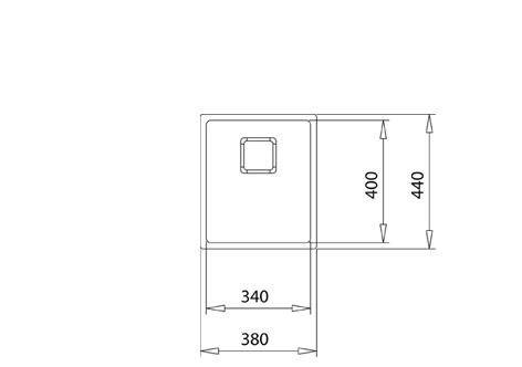 - stal szlachetna, wymiary zew 380x440mm, wielkość 340x400x200mm, kmpl odpływowy z zaworem 3 1/2, z przedłużką i syfonem, do szafek od 45cm