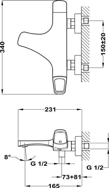 - ścienna, dwuuchytowa, przełącznik wanna/natrysk, chrom