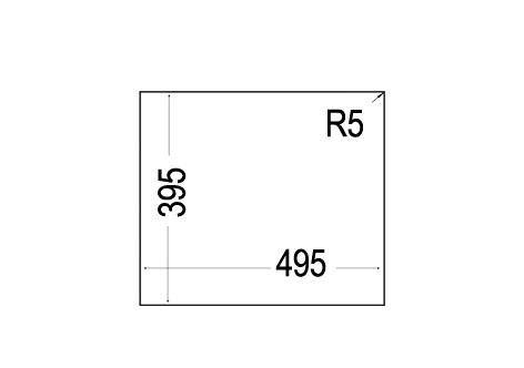 - Wycięcie w blacie: 495 x 395 mm, promień kąta 5 mm