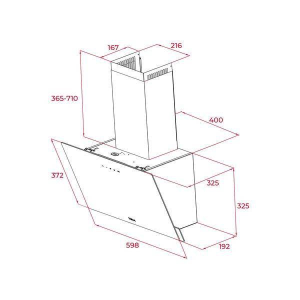 - 60cm, przyścienny, klasa C, sterowanie sensorowe, 2+1 prędkości turbiny, oświetlenie LED, wyświetlacz, filtry metalowe, 425 m3/h, Inox, szkło w kolorze białym
