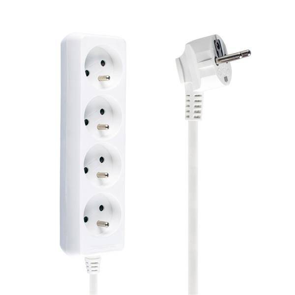 - 4 gniazda, 1.5m, bez przełącznika, biały