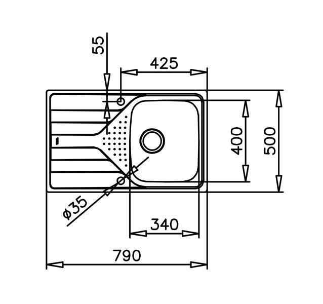 - stal szlachetna, wymiary zew 790x500mm, wielkość komory: 400x340x170mm, model odwracalny, kpl odpływowy 3 i 1/2" z syfonem, do szafek 45cm