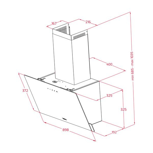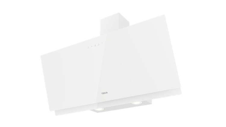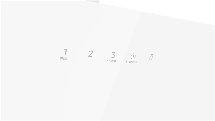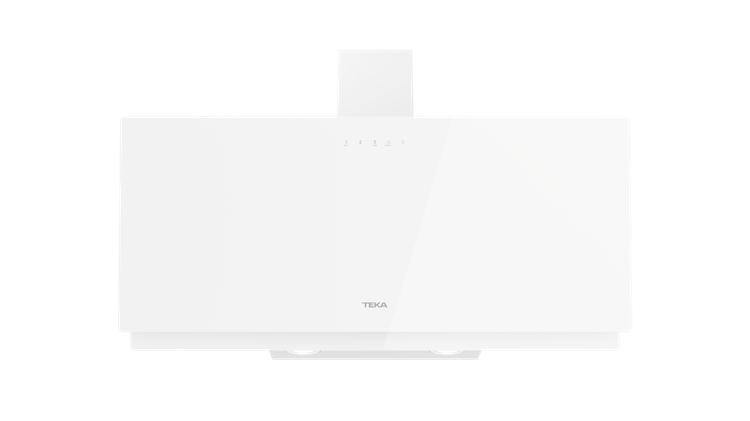 - 90cm, przyścienny, sterowanie dotykowe, 3+1 prędkości turbiny, oświetlenie LED, wyświetlacz, filtry aluminiowe, 485 m3/h, Inox, szkło w kolorze białym