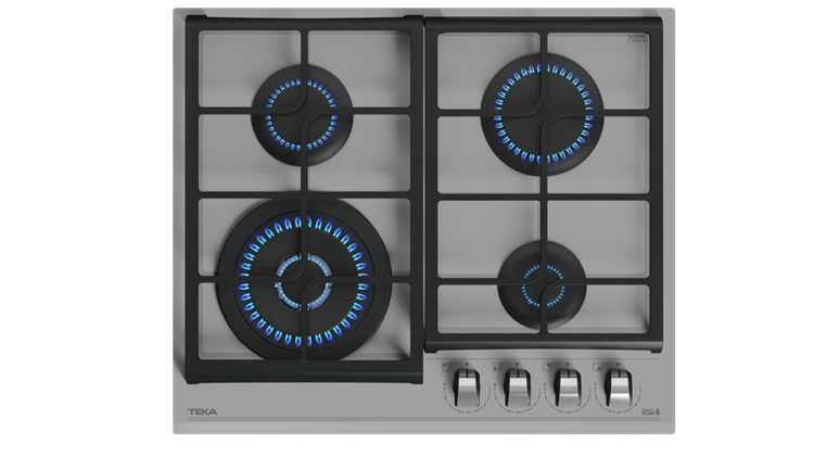 - szkło hartowane; 4 palniki (1x podwójny); ster. pokrętłami z zapalaczami; 9-stopniowa reg. płomienia ExactFlame; żeliwne ruszty; system łatwego montażu