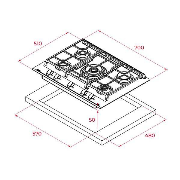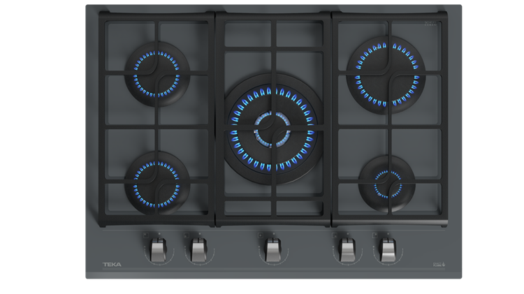 - szkło hartowane w kolorze kamienny szary; 5 palników (1x podwójny); ster. pokrętłami z zapalaczami; 9-stopniowa reg. płomienia ExactFlame; żeliwne ruszty; system łatwego montażu,