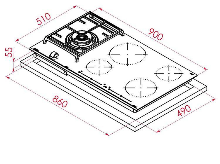 - 4 pola indukcyjne i 1 palnik gazowy, sterowanie sensorowe +automatyczna zapalarka w pokrętle, ExactFlame, żeliwne ruszty, szkło ceramiczne, czarne szkło