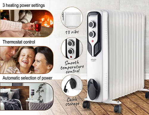 - Wydajny grzejnik olejowy Adler 7818. Pozwala dogrzać pomieszczenie, w którym brakuje kaloryferów lub są one niedostatecznie wydajne. Niezastąpiony w czasie awarii systemu ogrzewania. Grzejnik daje możliwość płynnej regulacja temperatury, działa na 3 pozio