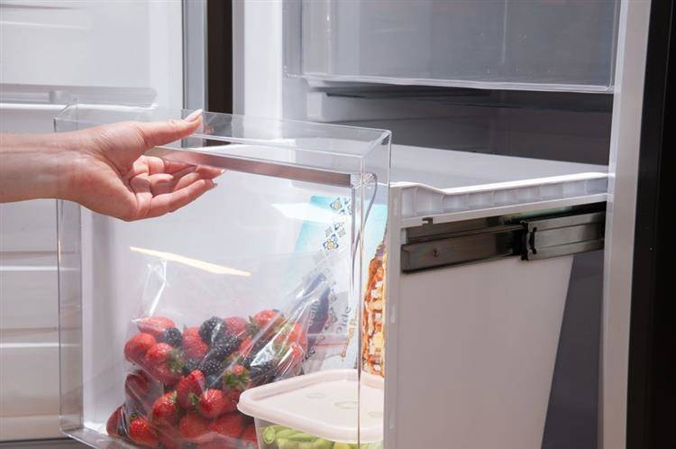 - 274L, szufladowa, E, 3 półki, 4 szufladyw tym BIG BOX na prowadnicach teleskopowych , dwa balkoniki, NoFrost, wyświetlacz, kompresor inwerterowy, Multi Air Flow, Smart Sensors, 185x60x70, 39dB, inox, roczne zużycie energii elektrycznej:246 kWh/rok