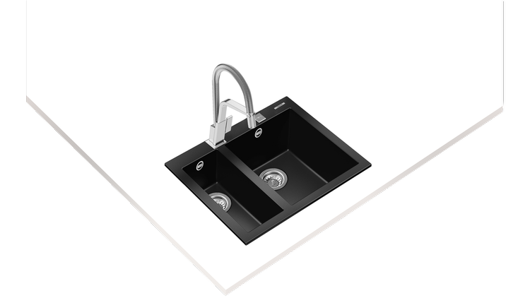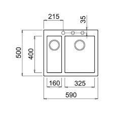 - tegranit: czarny, wymiary zew 590x500mm, wielkość komór 325x400x200mm i 160x400x155mm, kpl odpływowy z automatem zamykającym z zaworami 3 1/2" z przedłużką i syfonem, do szafek od 60cm