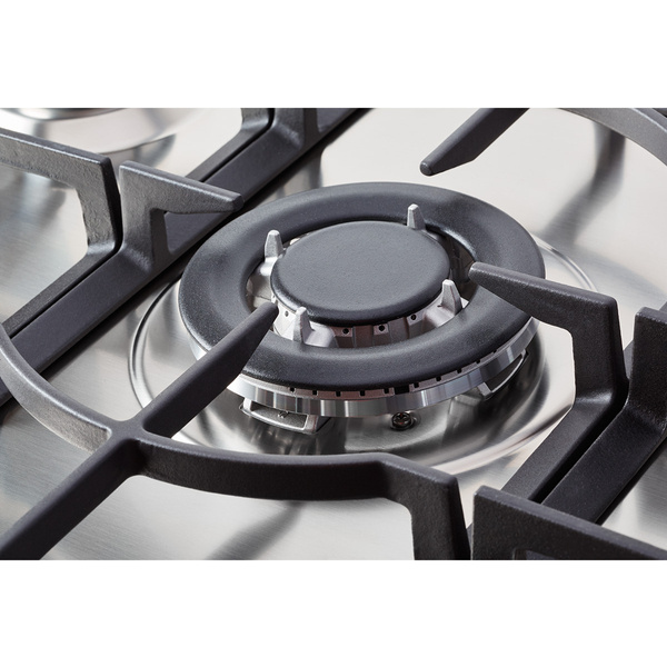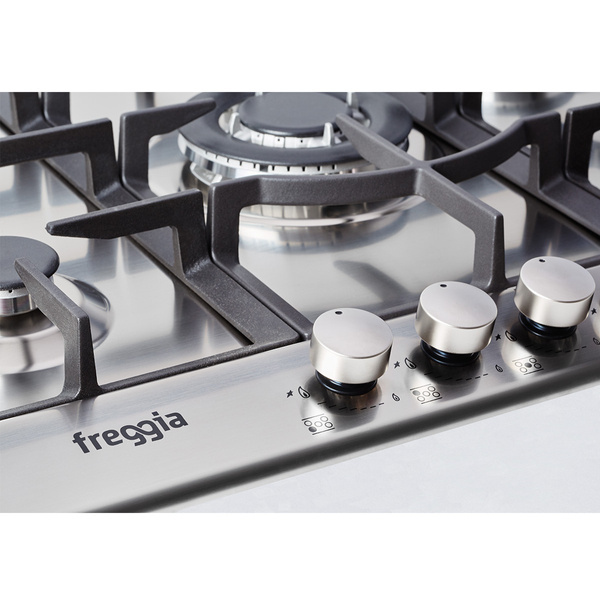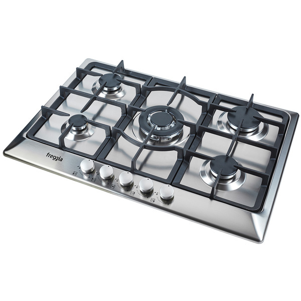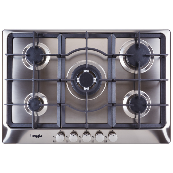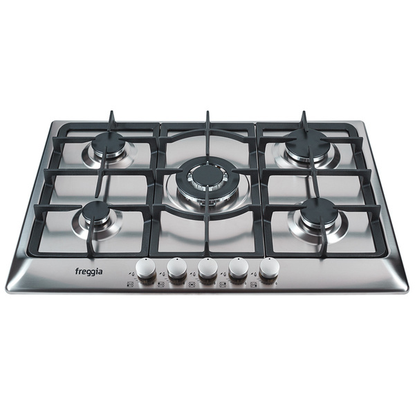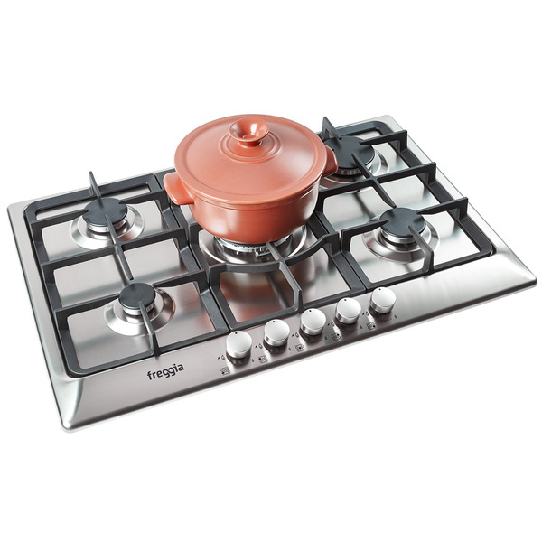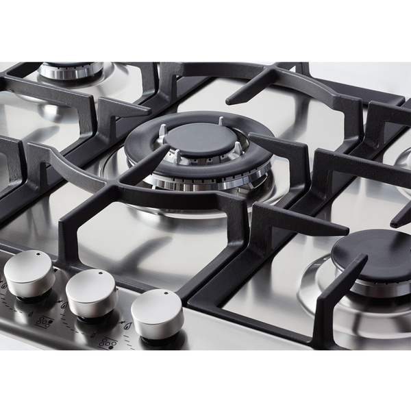 - Płyta pięciopalnikowa gazowa, linia Moderno, kolor INOX, automatyczna zapalarka w pokrętle, zabezpieczenie przeciwwypływowe gazu, wymienne dysze dla gazu propan-butan, ruszty żeliwne, palnik turbo WOK 3 pierścienie, sterowanie z przodu.