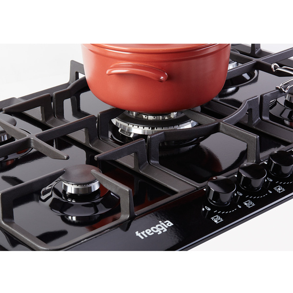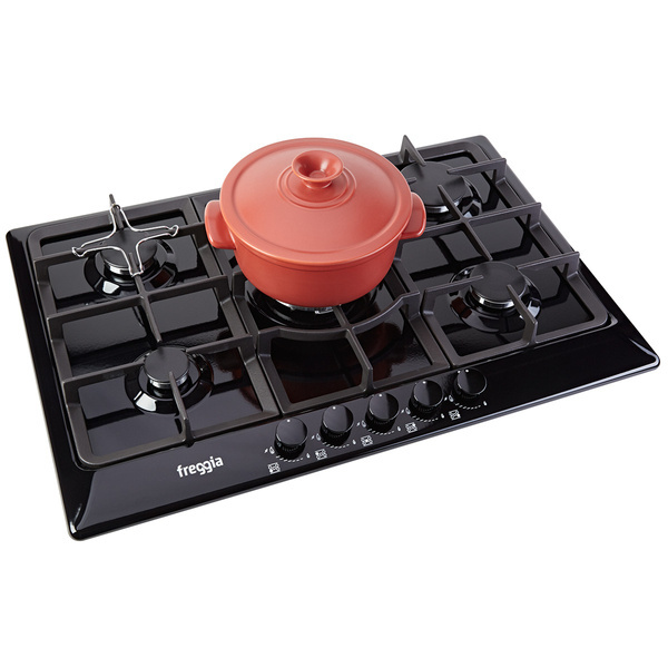 - Płyta pięciopalnikowa gazowa, linia Moderno, kolor czarny, automatyczna zapalarka w pokrętle, zabezpieczenie przeciwwypływowe gazu, wymienne dysze dla gazu propan-butan, ruszty żeliwne, palnik turbo WOK 3 pierścienie, sterowanie z przodu.