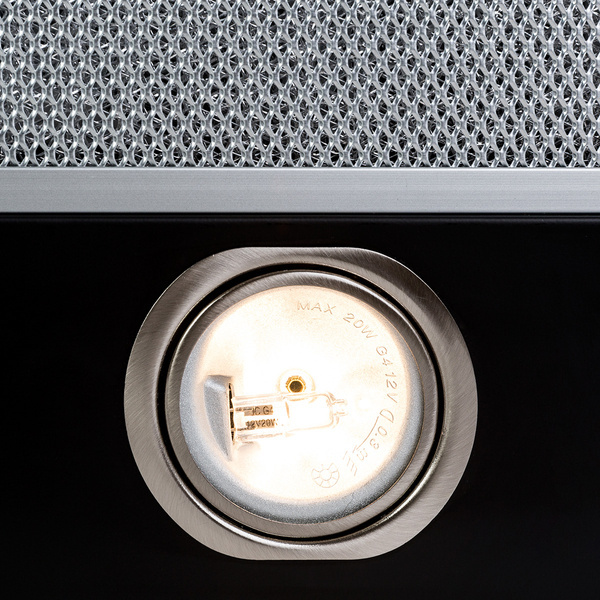 - okap o szer. 60 cm, linia Moderno, kolor czarny, wydajność 324 m3/h, sterowanie przyciskami, 3 prędkości, oświetlenie LED, wskaźnik zanieczyszczenia filtrów.