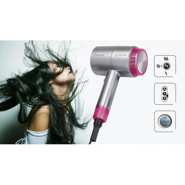 Poznaj nową suszarkę do włosów MSW-22. Urządzenie wykorzystuje technologię jonizacji, czyli uwalniania ładunków ujemnych podczas suszenia. Osiadają one na powierzchni włosów i neutralizują ładunki dodatnie, przez co kosmyki nie elektryzują się i co więcej, stają się gładsze. W suszarce MSW-22 znajdziemy 2-stopniową regulację nadmuchu powietrza oraz 3- stopniową regulację temperatury, co pozwala na indywidualne dobranie odpowiednich parametrów suszenia. Co ważne, suszarka MSW-22 została wyposażona również w przycisk nadmuchu zimnego powietrza, które nadaje włosom blask i powoduje, że są one bardziej podatne na układanie.