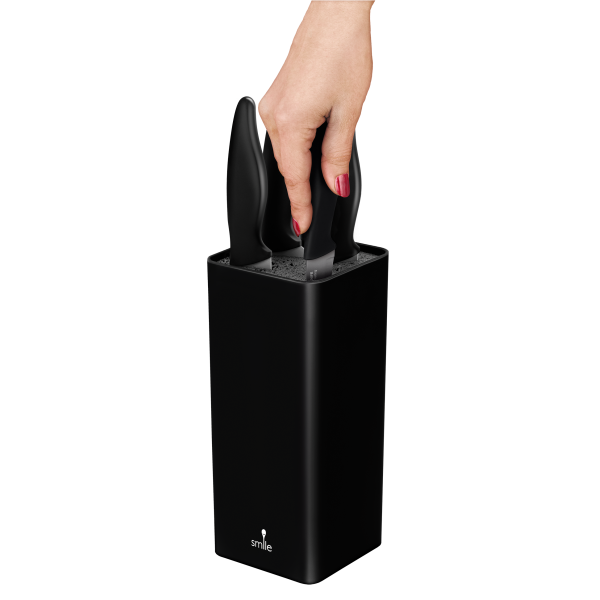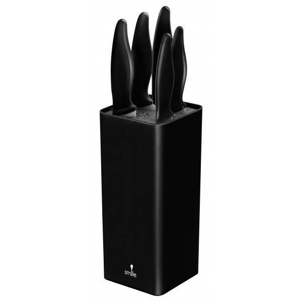 Blok do zestawu noży SNS-6 posiada wyjmowany wkład, wykonany z plastikowych pręcików. Bardzo łatwo wkłada się do niego dowolne noże, zarówno stalowe jak i ceramiczne. Jest wygodnym miejscem do ich przechowywania, a ponadto bardzo dobrze prezentuje się na kuchennym blacie.