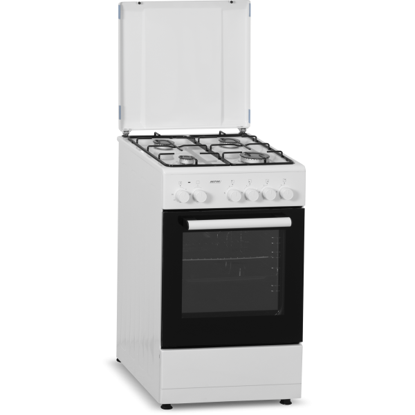 - 50cm, biała, gazowo-elektryczn, 4 palniki gazowe, ogrzewanie: dolne, górne, dolne-górne