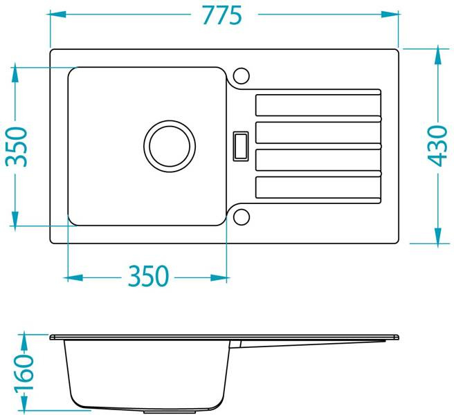 - Wymiary zlewozmywaka: 775x430x160 mm