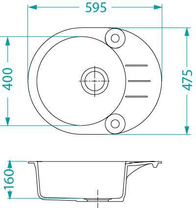 Wymiary zlewozmywaka: 595x475x160 mmWymiary komór: ø 400 mm