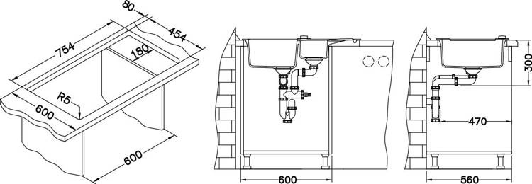 Wymiary zlewozmywaka: 780x480x180 mmWymiary komór: 320x400 mm 180x300 mm