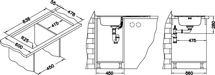 Wymiary wycięcia w blacie: 838x478 mm