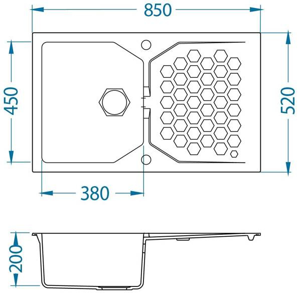 - Wymiary zlewozmywaka: 850x520x200 mm