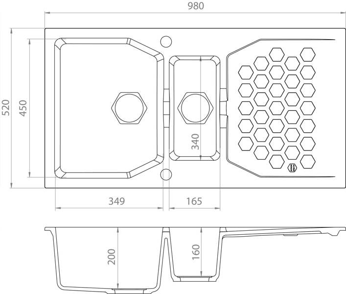 - Wymiary zlewozmywaka: 980x520x200 mm