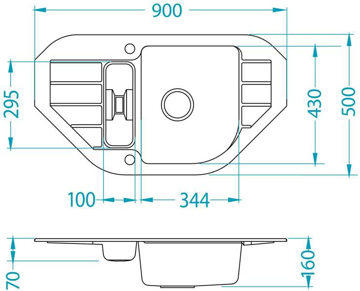 - Wymiary zlewozmywaka: 900x500x160 mm