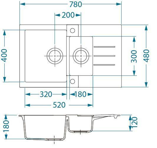 - Wymiary zlewozmywaka: 780x480x180 mm