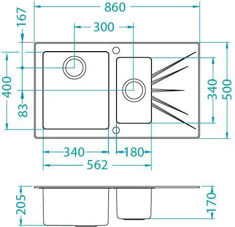 - Wymiary zlewozmywaka: 860 x 500 mm