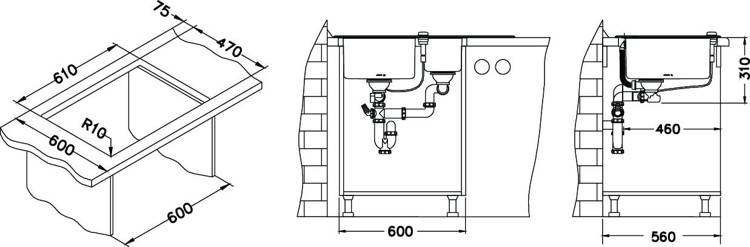 Wymiary wycięcia w blacie: 610 x 470 mm