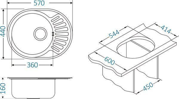 - Wymiary zlewozmywaka: 570x440x160 mm