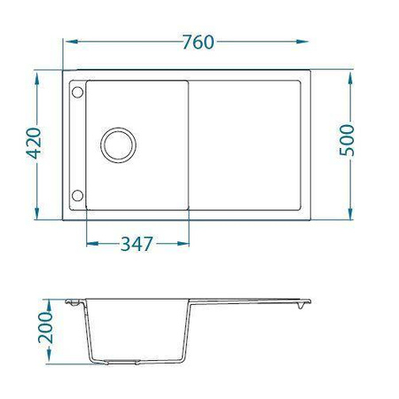- Wymiary zlewozmywaka: 760x500x200 mm