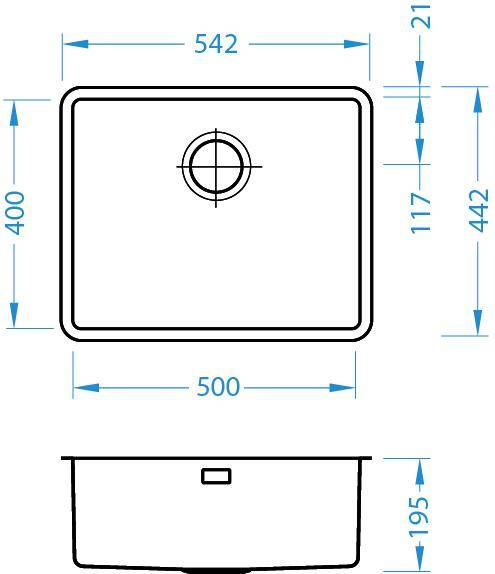 Wymiary zlewozmywaka: 542 x 442 x 195 mm