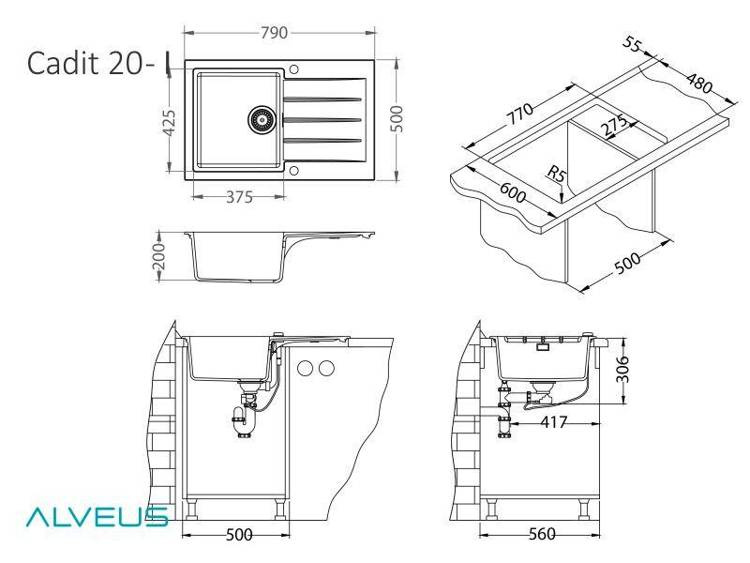 CADIT 20 kol. 81 BETON (790x500) zlew Granital 1 kom. z syfonem POP-UP 3 1/2" ALVEUS (1132025)