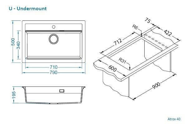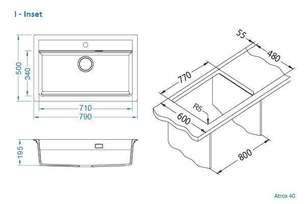 - Wymiary zlewozmywaka: 470 x 500 x 195 mm