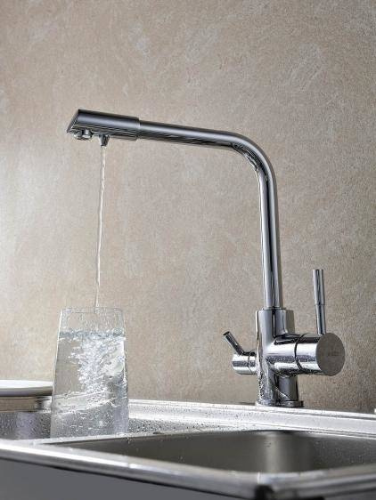 - BATERIA Z PODŁĄCZENIEM DO WODY FILTROWANEJ– wykończenie: CHROM– wylewka obrotowa do 360°– głowice ceramiczne– 2 elastyczne wężyki podłączeniowe 3/8“ – 400 mm– 1 wężyk podłączeniowy do filtra 1/2” – 400 mm z szybkozłączką– 2 perlatoryBATERIA Z